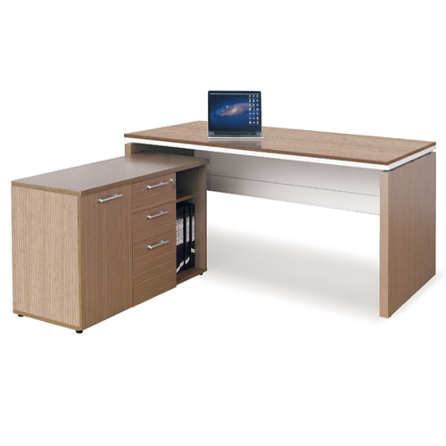 -Bàn lãnh đạo – BLD02 không hộc, mặt gồm khung sắt trắng và mặt gỗ CN phủ melamine dày 18mm phía trên. Yếm sắt sơn tĩnh điện màu trắng, chân gỗ CN dày 50mm.