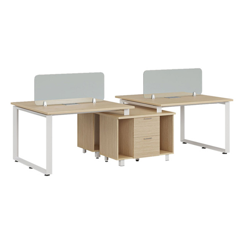 - Module bàn văn phòng HRMD12 mặt gỗ Melamine thiết kế 2 cụm mặt vuông ghép hở với 4 chỗ ngồi.