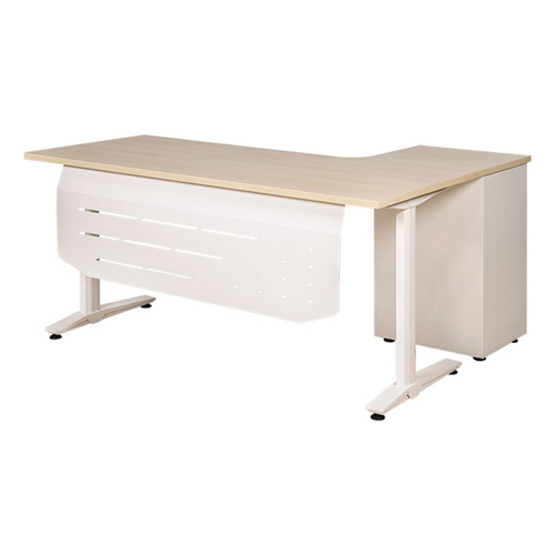 - Mặt bàn UNP1612CS3 hình chữ L lượn góc trái sơn màu M14, có vát cạnh 45 độ phía người ngồi.