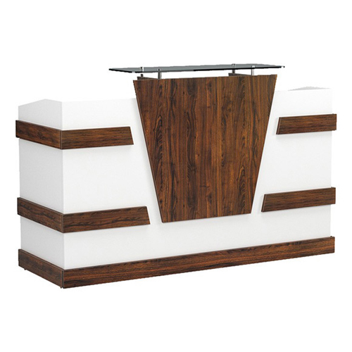 - Bàn lễ tân BQ104 có phần yếm trống có thể dính logo của doanh nghiệp.