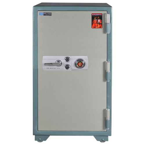 - Két sắt chống cháy KS250K2C1 dạng đứng có 2 khóa chìa, khóa mã, tay nắm.