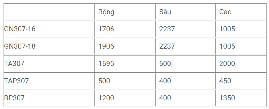 - Một bộ bao gồm giường GN307, tap đầu giường TAP307, tủ quần áo TA307 và bàn phấn BP307.