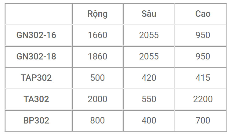 - Một bộ bao gồm giường GN302, tap đầu giường TAP302, tủ áo cánh lùa sử dụng ray cao cấp TA302, bàn phấn BP302.