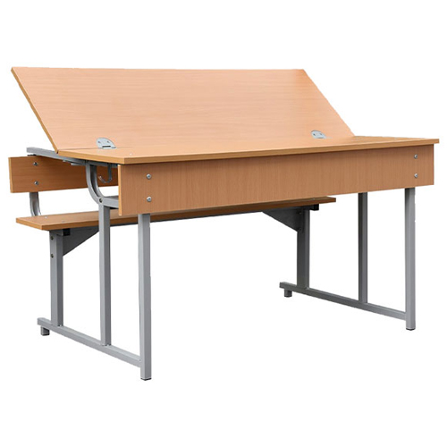 - Bàn học bán trú BBT102C có ngăn trống liền yếm để đồ dùng bên dưới, hai bên có móc treo túi xách.