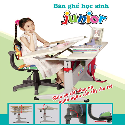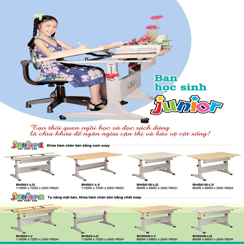 - Bàn học sinh BHS01-LG/BHS01B-LG (Bàn Junior ) với các tính năng điều chỉnh linh hoạt luôn phù hợp hoàn hảo với trẻ ở mọi giai đoạn phát triển và cung cấp sự hỗ trợ tối ưu cho hệ thống cột sống và cơ bắp, giúp trẻ ngồi học thoải mái trong 1 khoảng thời gian dài.