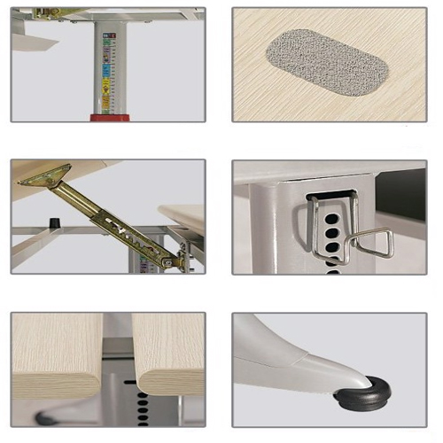 - Mặt có các tấm tăng ma sát giữ sách, vở, bút……không rơi khi mặt phẳng nghiêng.