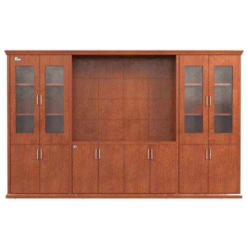 - Thiết kế tủ gồm 8 khoang, phía dưới cánh gỗ mở, phía trên khung cánh kính, phần giữa để khoang trống.