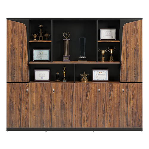 - Thiết kế tủ tủ giám đốc LUXT2420V6 với hai khoang cánh cao ốp trang trí hai bên, ở giữa là hệ thống kệ.